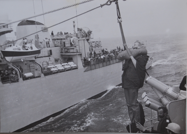 Maggie was adopted by the Royal Navy in 1981 and invited to join in maneuvers sailing out of Portsmouth and into the English Channel.